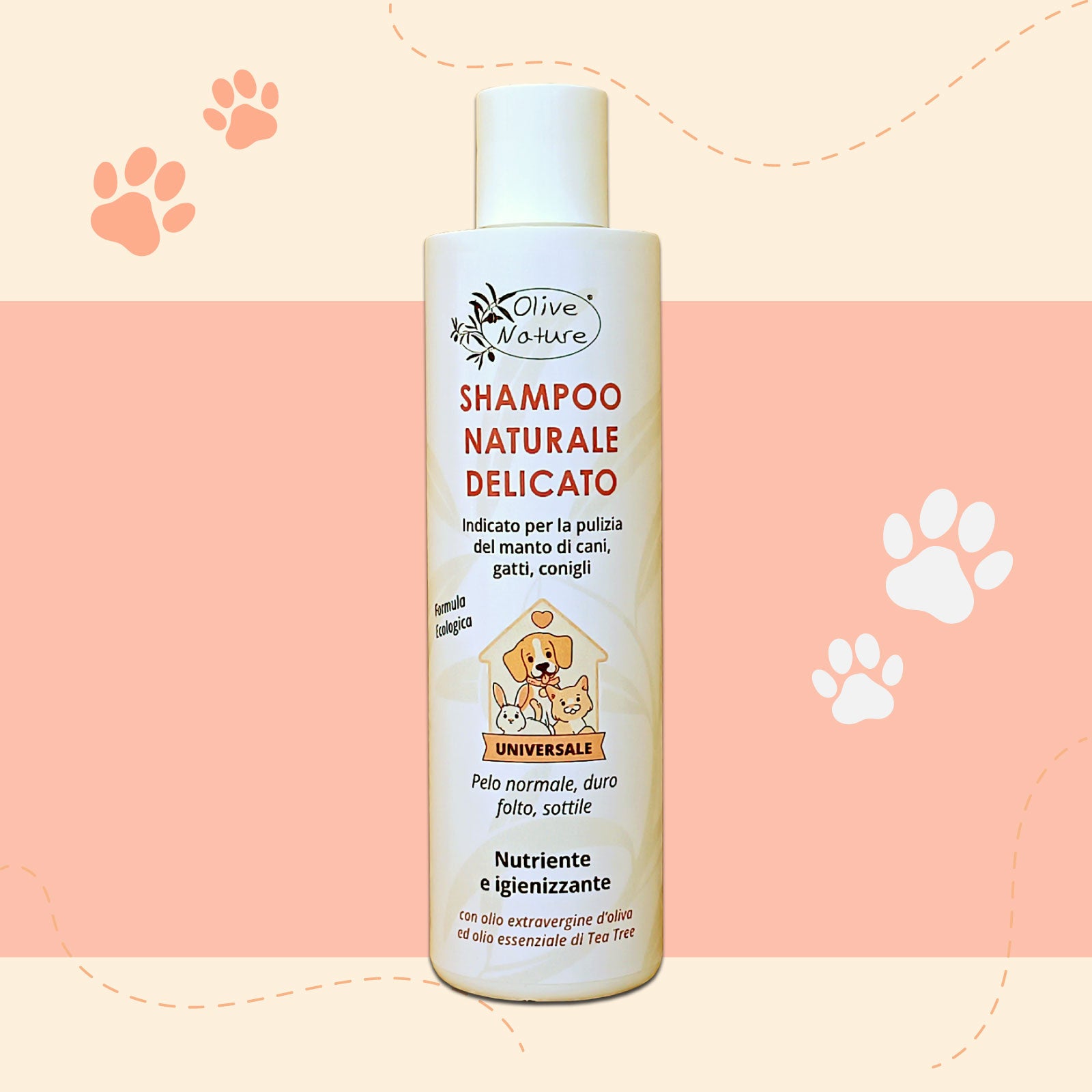 Shampoo nutriente ed emolliente per pelo normale, duro o folto, realizzato con tensioattivi delicati ed arricchito con olio extravergine d'oliva. La sua formula delicata a pH neutro pulisce il manto senza irritare la cute, grazie ai tensioattivi delicati contenuti, ed elimina i cattivi odori. L'olio extravergine d'oliva e la glicerina vegetale nutrono e idratano la cute, donando lucentezza al manto. L'olio essenziale di Tea Tree svolge un'efficace azione igienizzante e antiparassitaria.